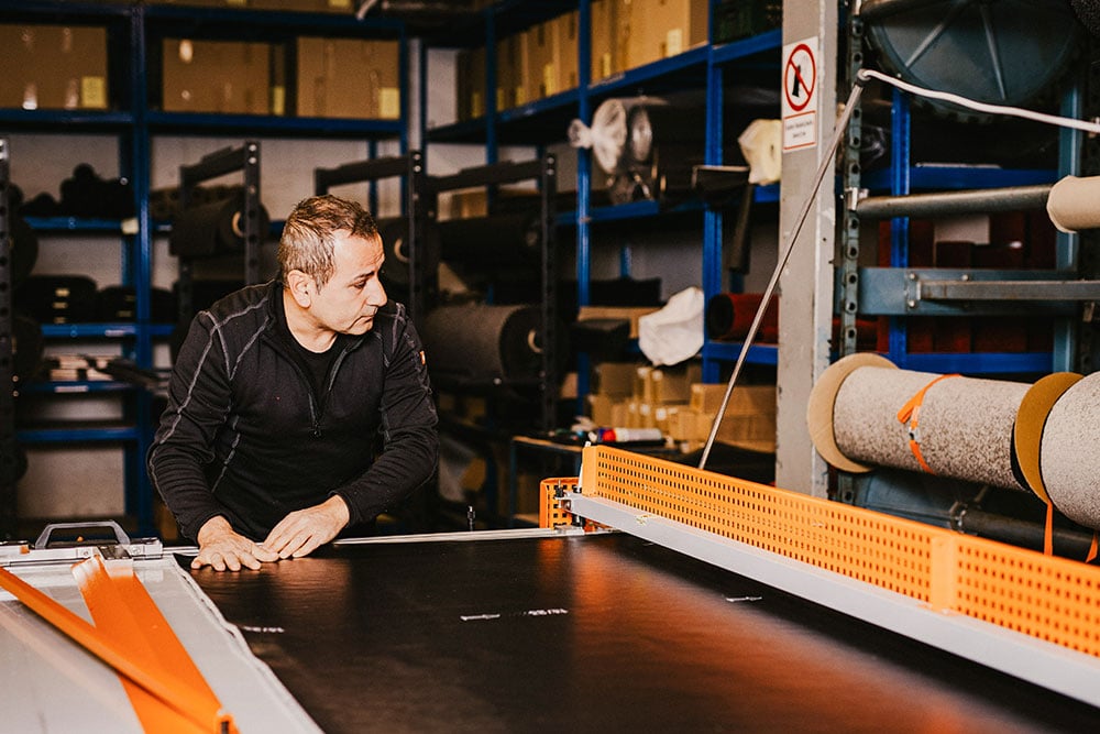Anfangs schnitt Gründer Joachim Müller Ihre Matten noch persönlich zu. Heute erledigt unser engagiertes Team den Großteil des Zuschnitts in unserer eigenen Produktionsstätte in Mannheim. Produkte, die wir nicht selbst zuschneiden, werden direkt von den Partnerherstellern an Sie versendet.